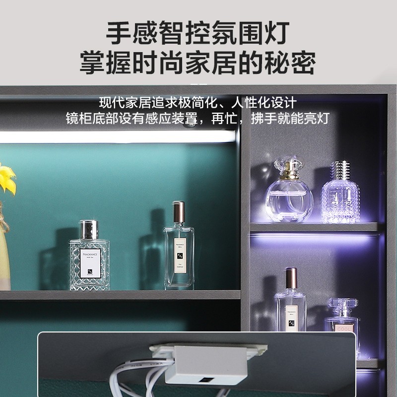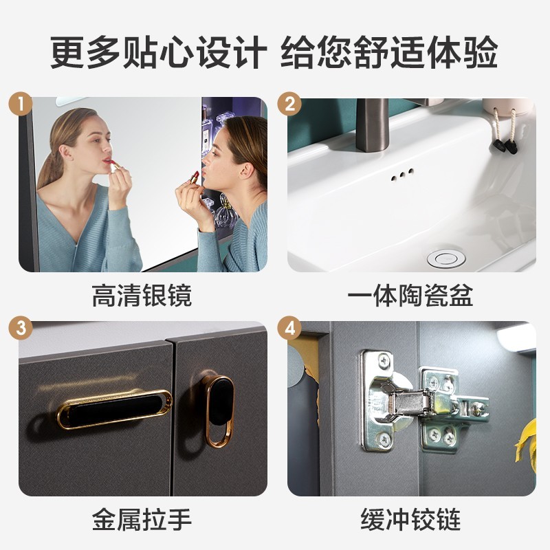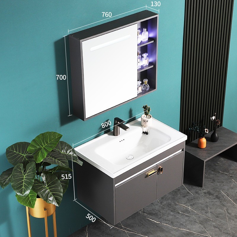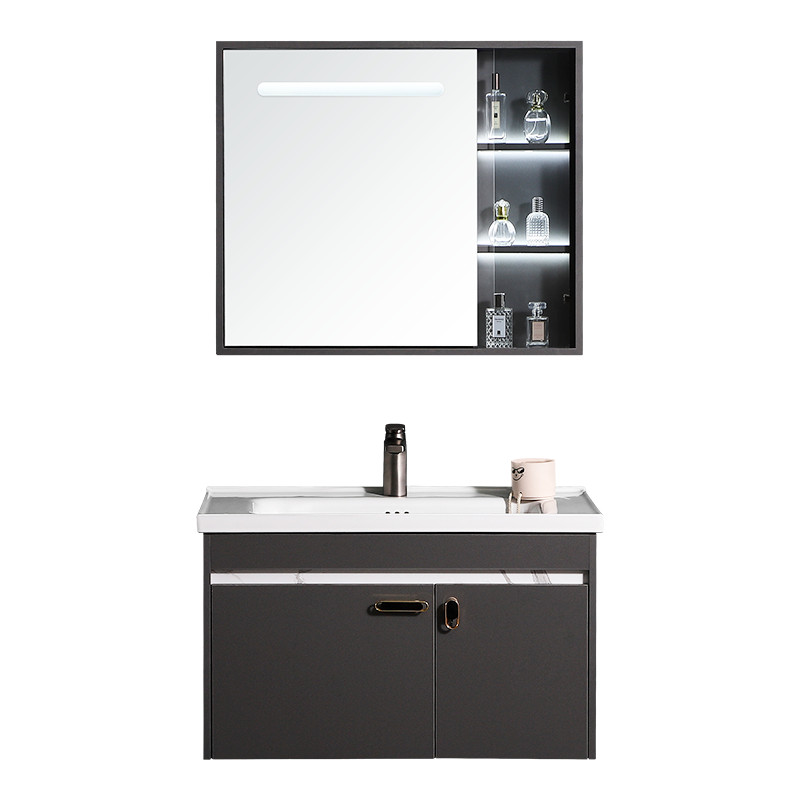 太陽雨浴室柜/主柜80CM/鏡柜/一體陶瓷盆/多層實木/免漆/手感LED智能鏡/YD1007